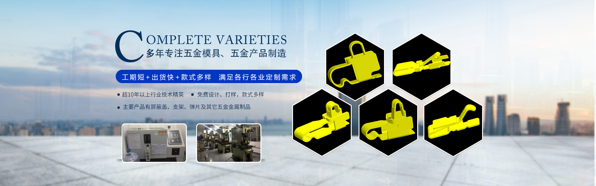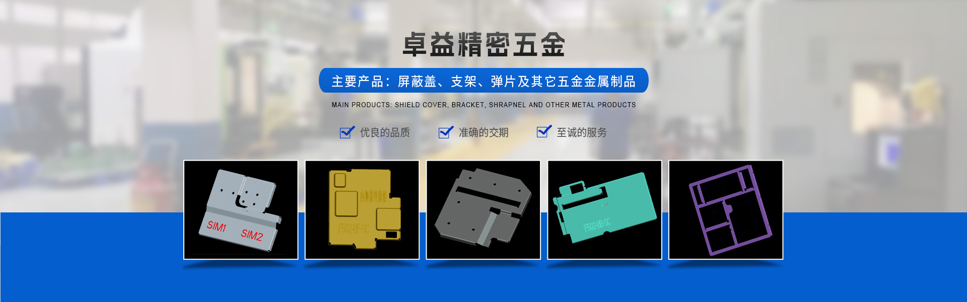 東莞市卓益精密五金有限公司(原深圳市卓杰五金有限公司)創辦于2008年,2016年由于公司業務及規模升級擴遷致東莞市。本公司是一家五金模具研發、五金產品制造及銷售為一體的專業制造性企業。目前主要產品有屏蔽蓋、支架、彈片及其它五金金屬制品。